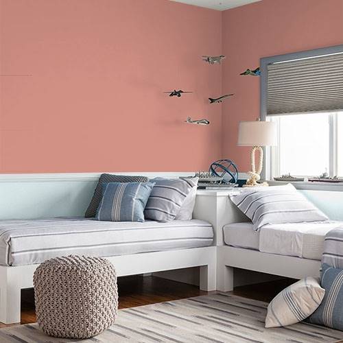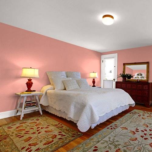 This lovely coral is a choice color for a dining room. Contrast with lighter woods in flooring or furniture for an updated look.