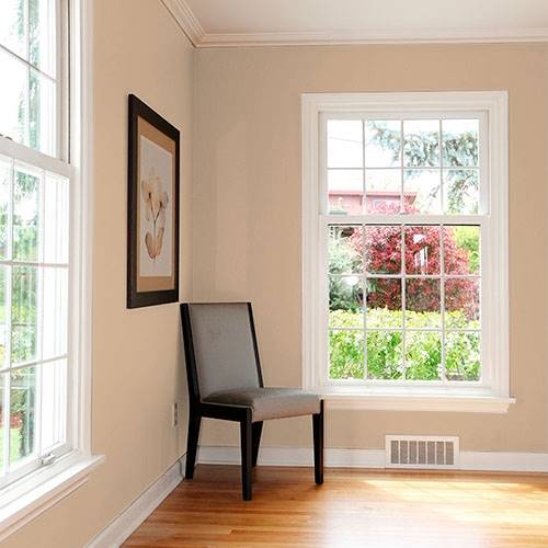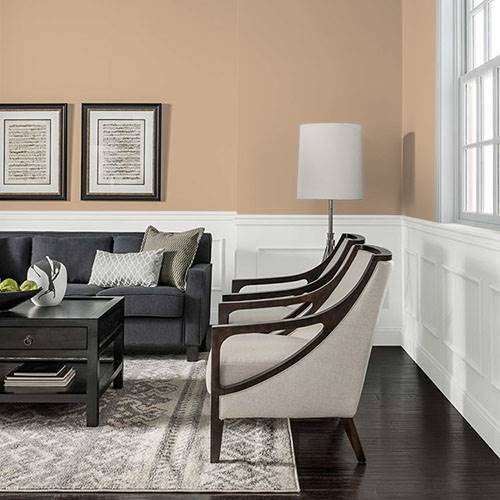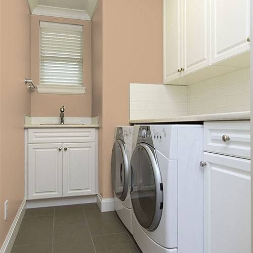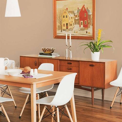 A golden tan creates a coffee shop environment adding a morning glow to your kitchen. For an accent, add deeper browns and white cabinets.