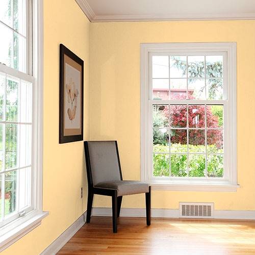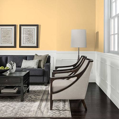 This golden color glows of freshness perfect for a breakfast nook. Bright whites frame this color perfectly for this entertaining area.