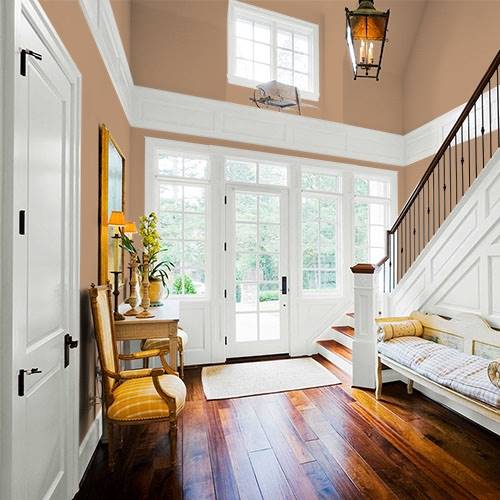 A rustic neutral can be used on all main walls. Accentuate this tone by using white trim.