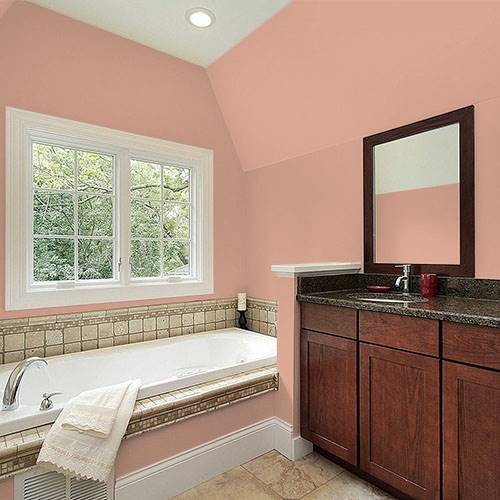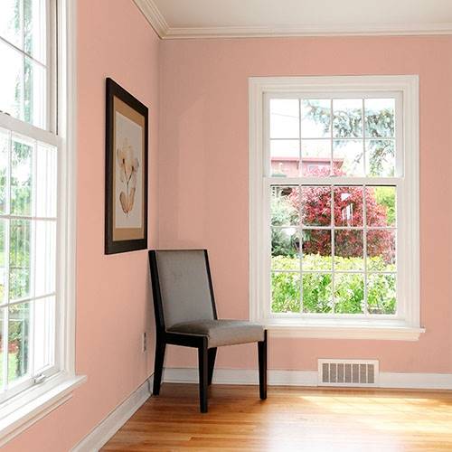 A historical inspired hue, this subdued coral creates a stately dining room. Bath in tradition, accent the room with antique collections.