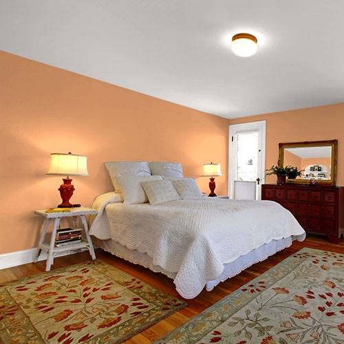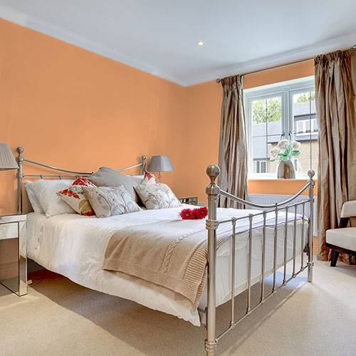 This midtoned earthy orange is a great selection for a cozy family room Pair with leather materials and décor.