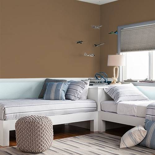 A midtoned dusky brown brings a sense of earthiness to your interior. Coordinates with beautiful soft neutrals or yellows for a fresh accent.
