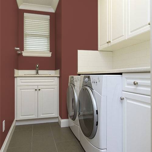 A classic, this red-orange is an appropriate front door color. The exterior body in medium toned tans coordinate beautifully.