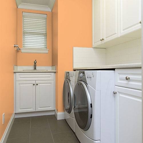 Use this zesty orange for an accent in a kitchen soffit area. Pair with darker wood cabinetry.