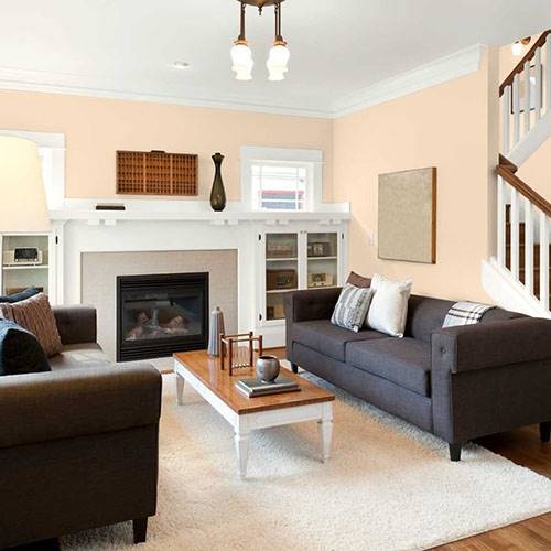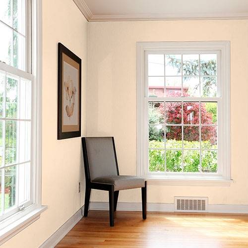 A romantic soft yellowed peach adds a spark of freshness within the dining room. Fresh floral patterns of reds, greens and blues add a lively presence.