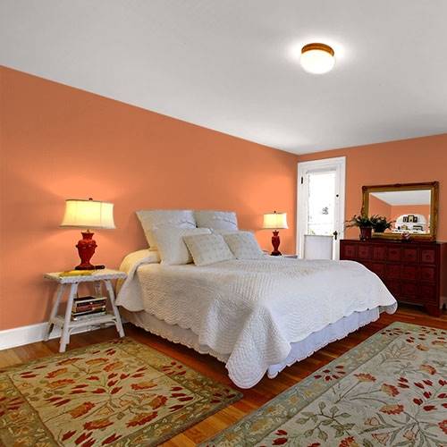 A sophisticate terra cotta, it can be quite lovely on an accent wall. Pair with warm tans for the surrounding walls and lighter creams as accents.
