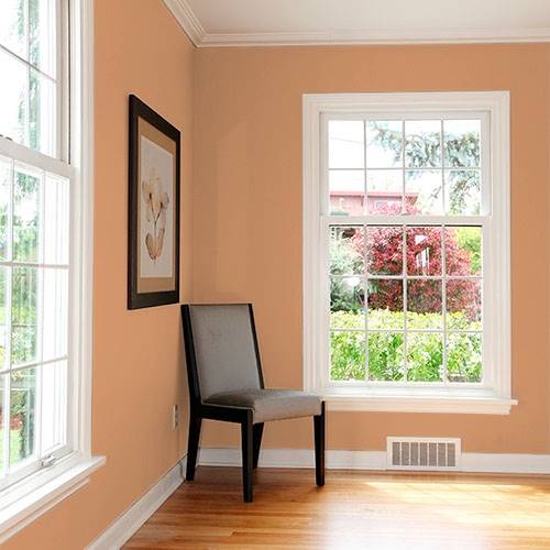 For café themed dining room, try this rusted tan for all main walls. A touch of dusted teals will finish this unique mood.