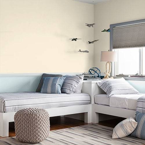 A fizzy yellow is perfect for main walls. This pairs quite splendidly with surrounding darker tan walls.