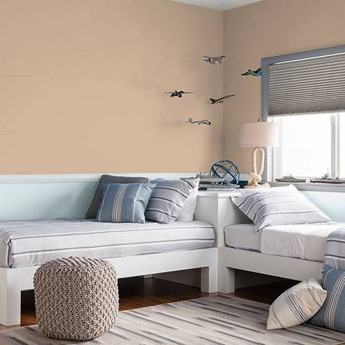This rich neutral beige is perfect for a living space. A great backdrop for rich and sophisticated floor treatments.