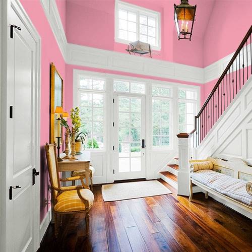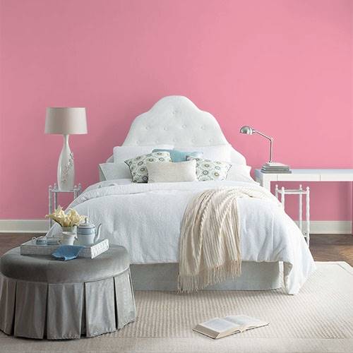 For a fun children's bathroom, use this perfect pink for this space. Add white trim as well as deep charcoal accents.
