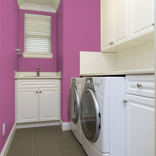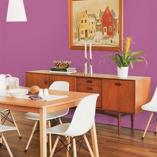 This bright fuchsia is an alluring accent wall. Add an accent of mystery by using deep charcoals for an adjoining room to balance out the drama.