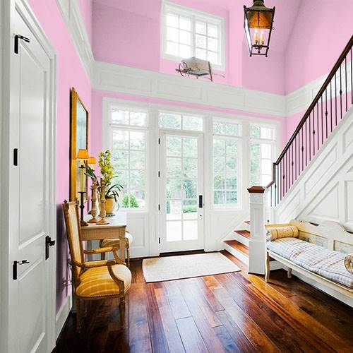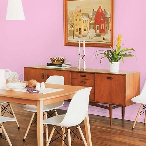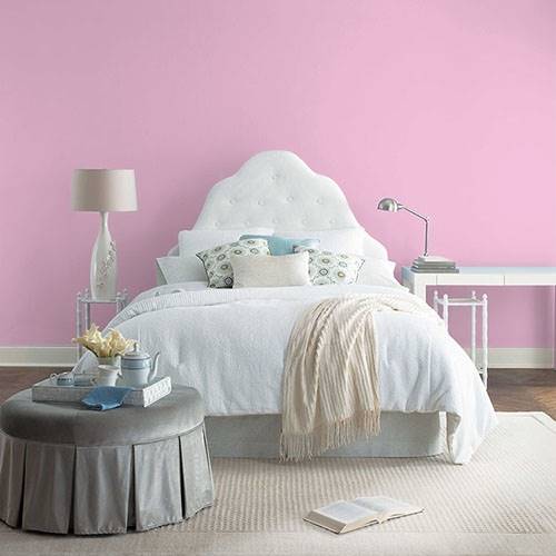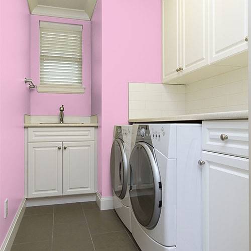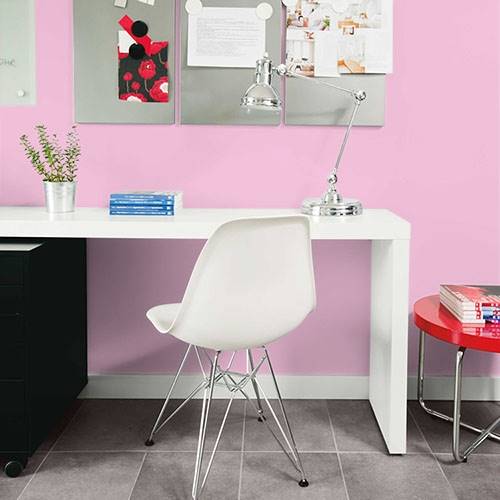 This bubble fun pink can be accented in an activity area of a home. Complement with accents of perky greens to create a dazzling space.