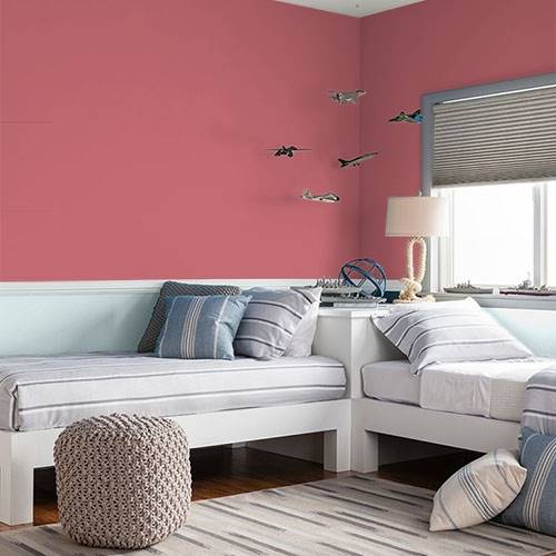 Flavorful in essence, apply this pop of red to an accent wall. Try using off- white trim and splashes of lime green for visual accent.