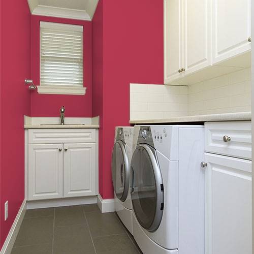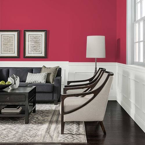 A chromatic filled red is drama for an interior accent wall. Pair with lighter grays and deep charcoals for surrounding walls.
