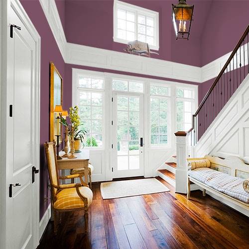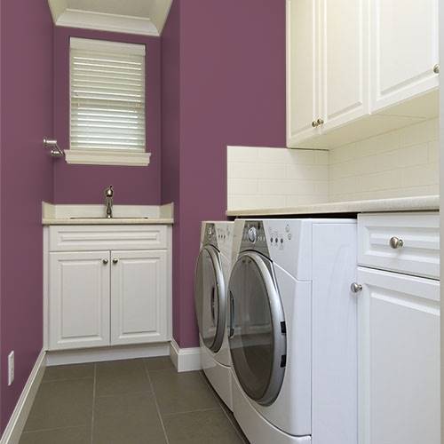 This sophisticated berry tone is perfect for an accent with marble countertops. Light muted tans are a great choice for surrounding walls.