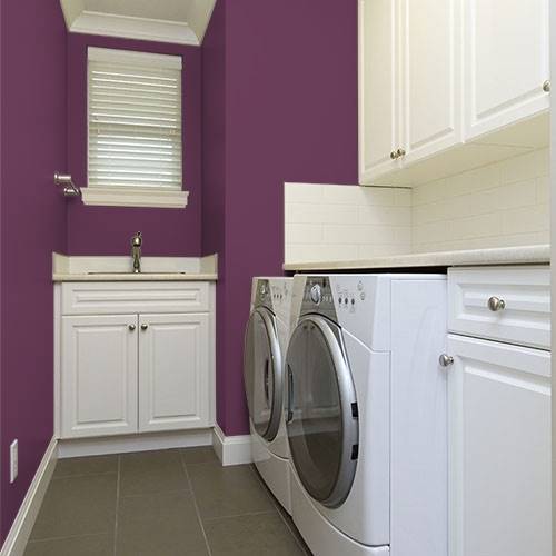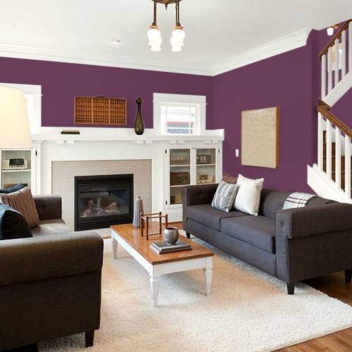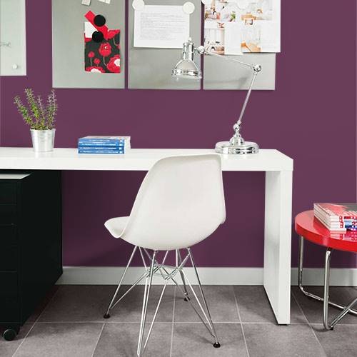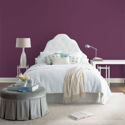 This luxurious deep plum works conveniently in a dining room. Trim in pink toned whites and add accents of gray for dimension.
