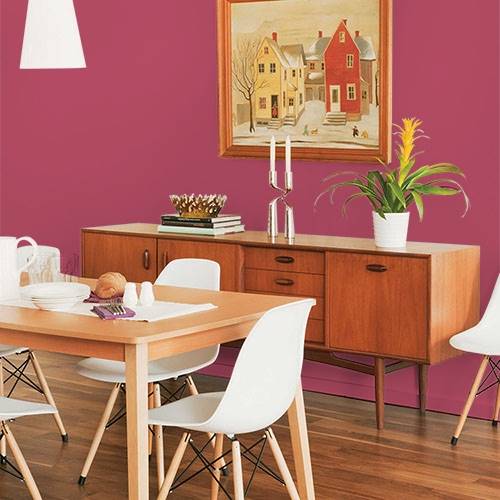For a very dramatic dining room, this red infuses this wow factor. Pair with off-white trim and black accents.