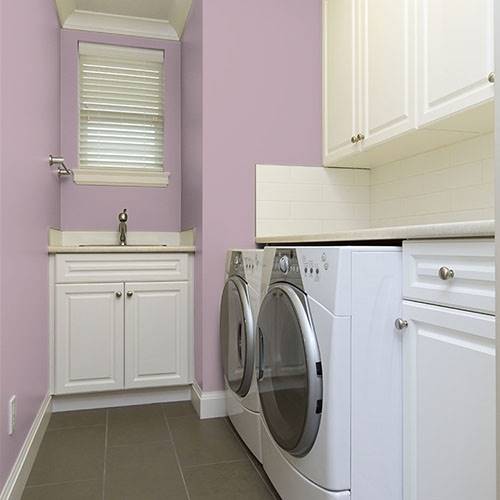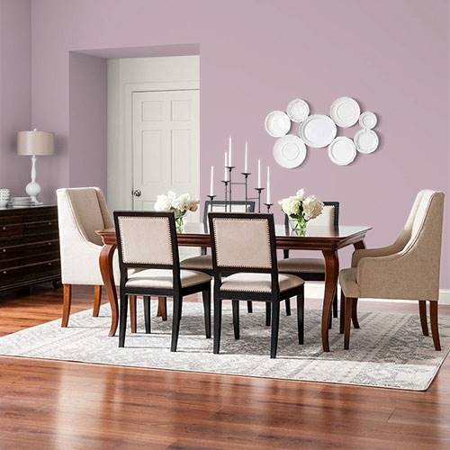 A beautiful dusty rose can be used as a main wall color for any desired space. Highlight with darker charcoal furniture and accessories.