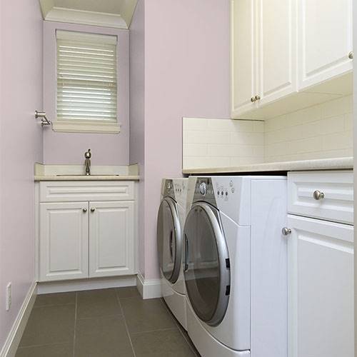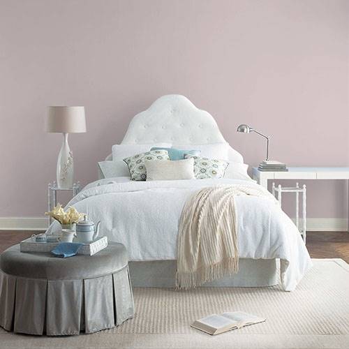 This elegant heathered rose creates a soothing atmosphere. Coordinate with white trim and wicker elements of furniture pieces.