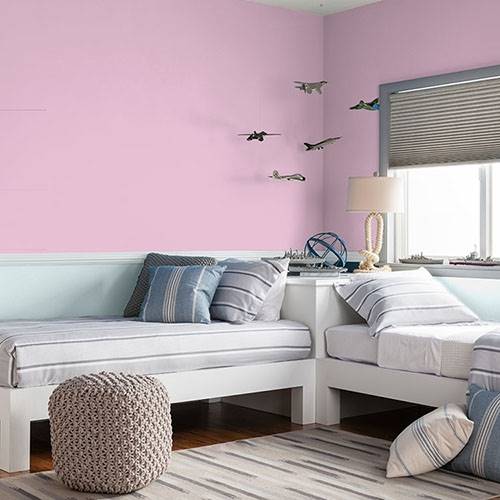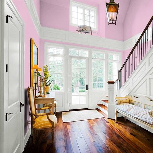 Adding a boost of brightness this pink adds energy to an interior space. Contrast this hue with rich plum accents on a feature wall or accessories.