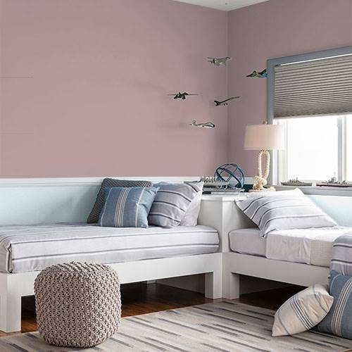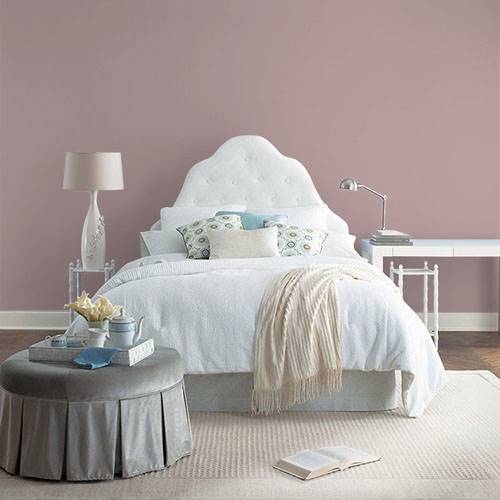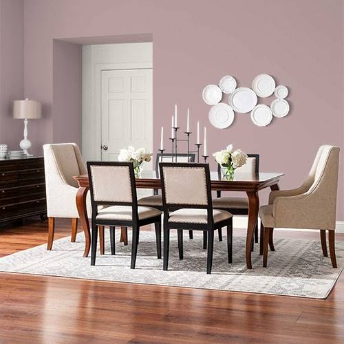 For a vintage style, use this pink tone with your collectibles. It coordinates beautifully with lighter tan walls.