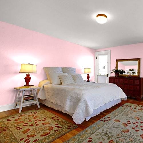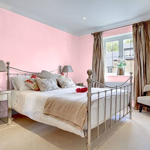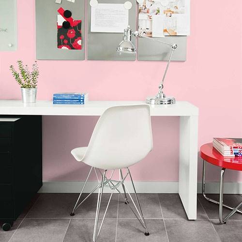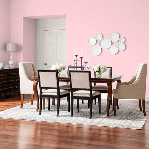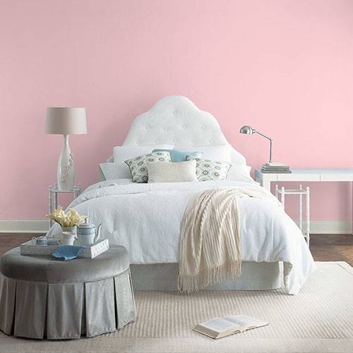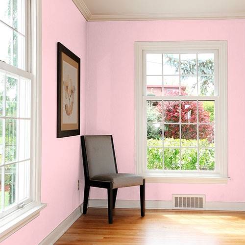 This powder pink is a wonderful treat for a romantic bathroom. Apply touches of effervescence greens for a complementary area.