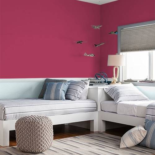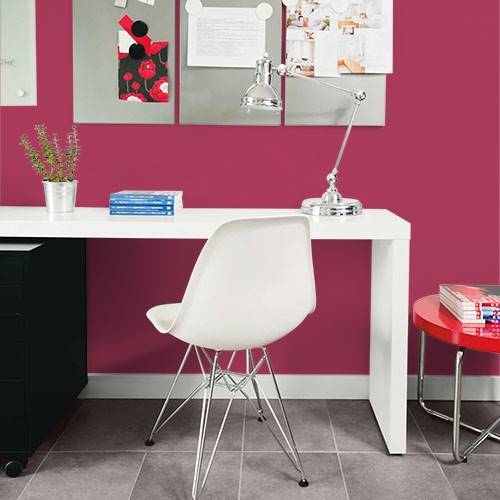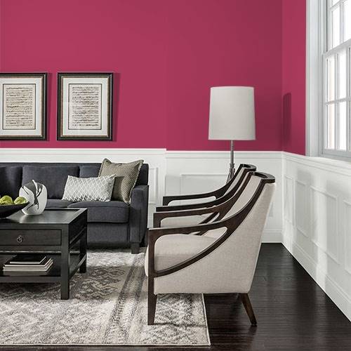 For a lively transitional space, use this glamourous red. Use white trim and light wood accents for a crisp and clean environment.