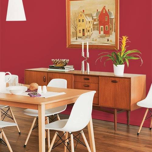 A drama filled red is perfect for a lively dining room. Complement this red with tones of deep charcoals or touches of rich golds and hunter greens.