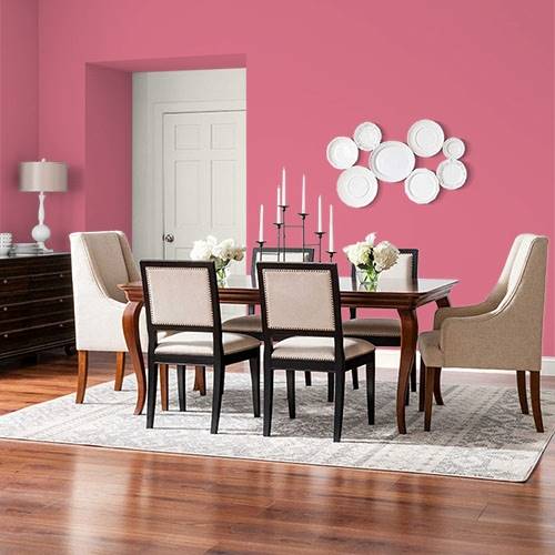This peppy pink can create a fun loving dining room. Add off-white trim and contemporary white furniture to add zany essence.