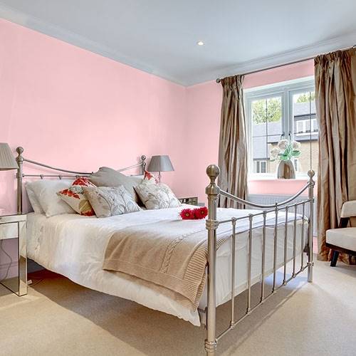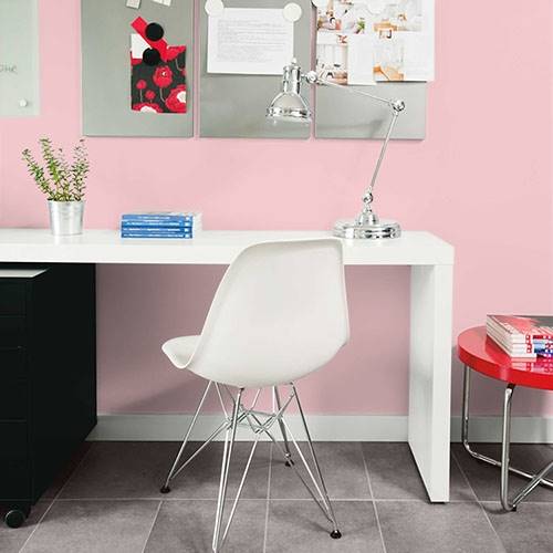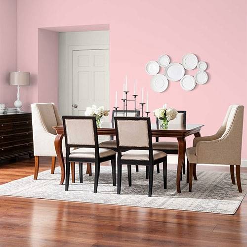 For a clean and crisp room, embrace this pink for main walls. Apply white trim and contrast with lighter birch inspired woods.