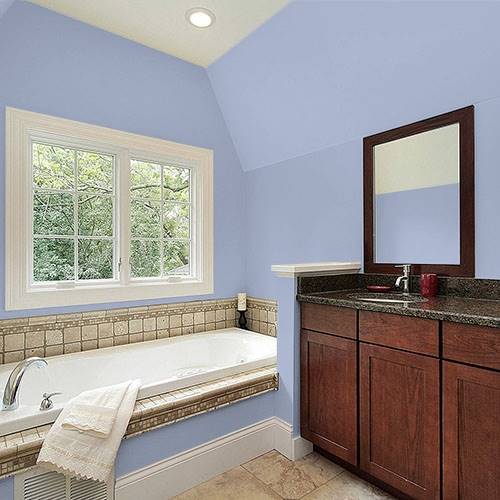 Relaxed and casual, this softened gray blue is perfect for a kitchen. White trim is most useful with this color.
