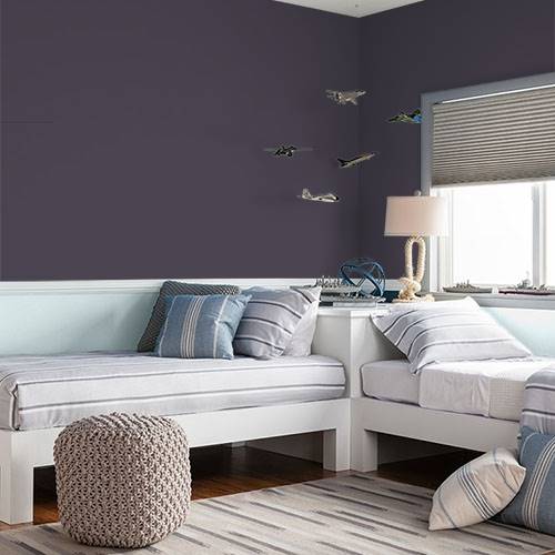 A mysterious and sophisticated plum is an excellent accent wall. Pair with lighter tones of this same color for joining walls.