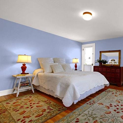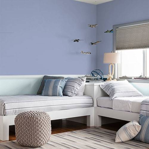 For a guest bedroom, select this beautiful purple to comfort this space. Trim with white on the moulding and choose dark wood furniture for this area.