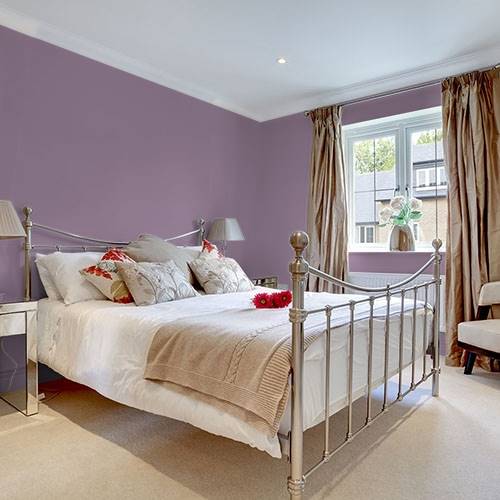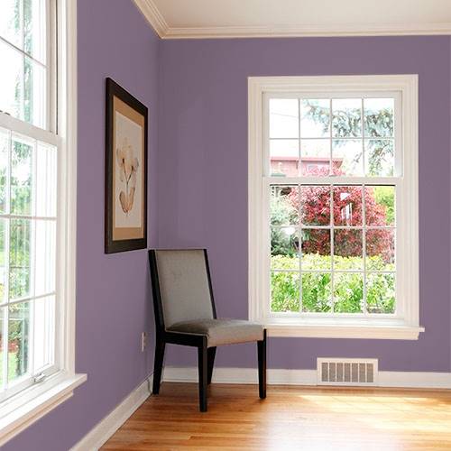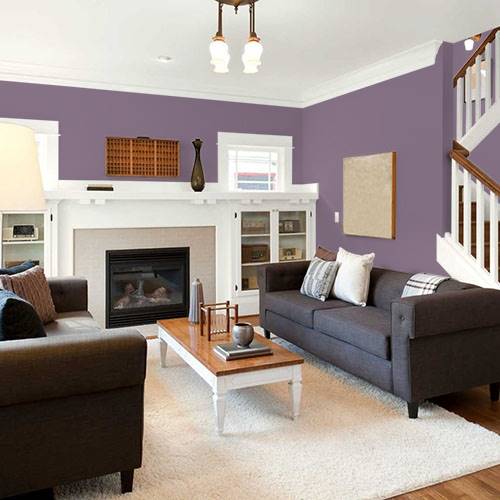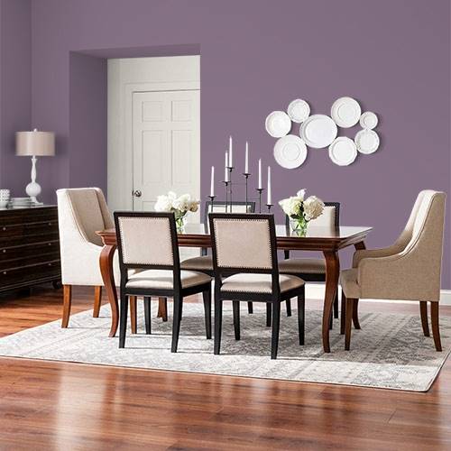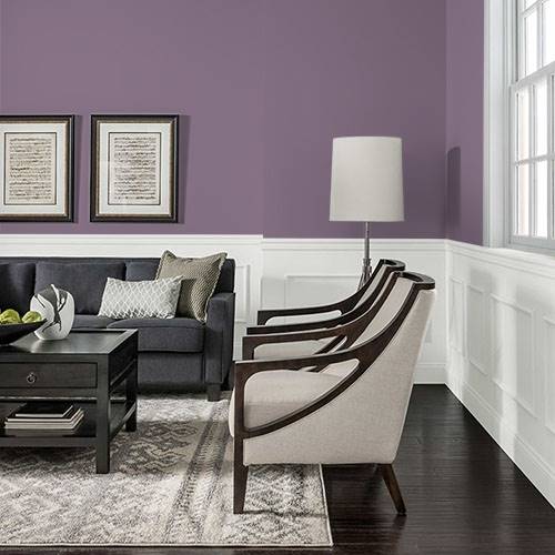 This is an elegant plum works on an accent wall. Use lighter gray hues on the remaining wall areas.