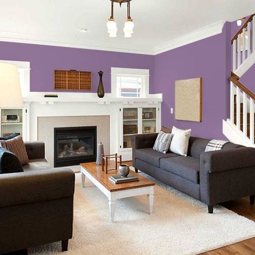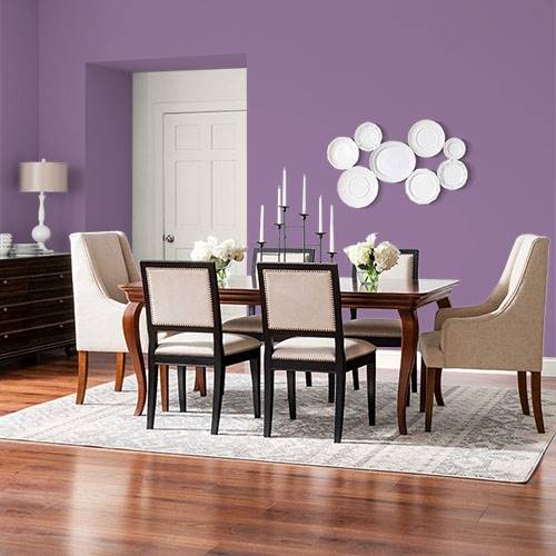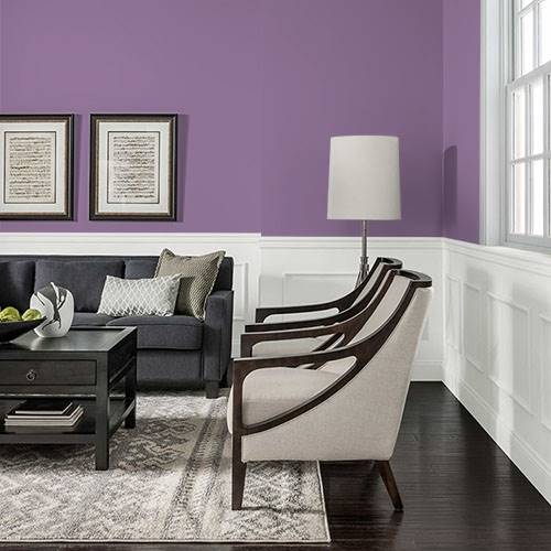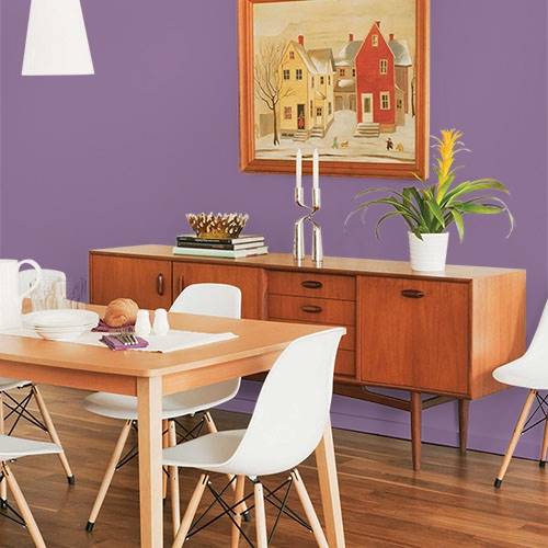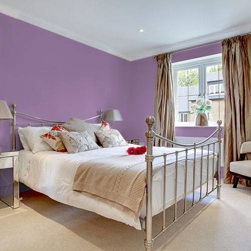 A lovely violet is perfect for a main wall in a bedroom. Contrast the tone with white trim and soft cream furnishings