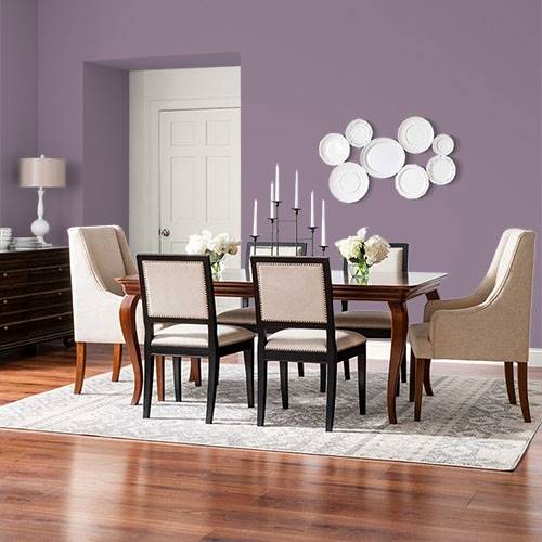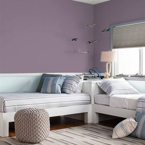 This lovely complex plum can be used on all four walls. Use a lighter shade on the remaining walls for a soothing ambiance.