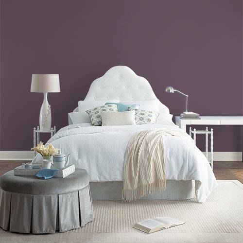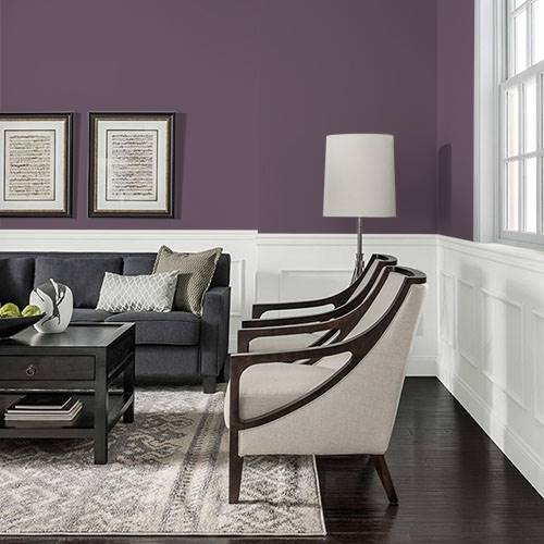 A rich sophisticated plum can accent a lovely dining room area. Use nature inspired greens to contrast the plum.
