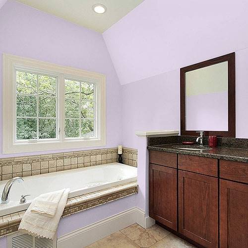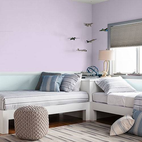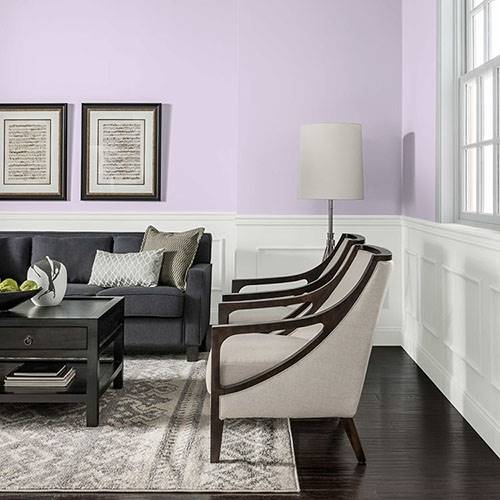 This softened violet creates an elegant space for a bedroom. Contrast with deep charcoal accents.