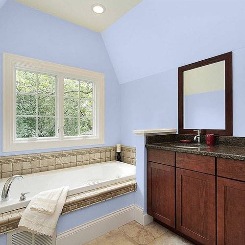 This gentle soft blue is perfect for a boys room. Pair with dark wood furniture accents.