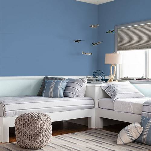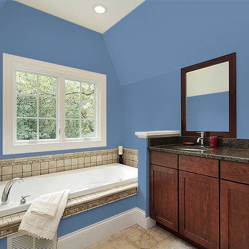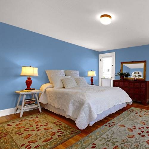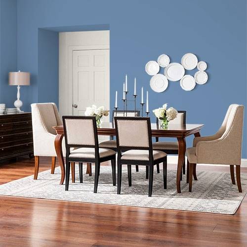 This deep blue adds sophistication to a living room. Trimmed in white, it denotes a clean crisp essence.