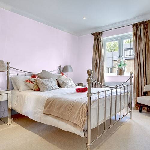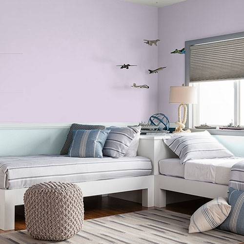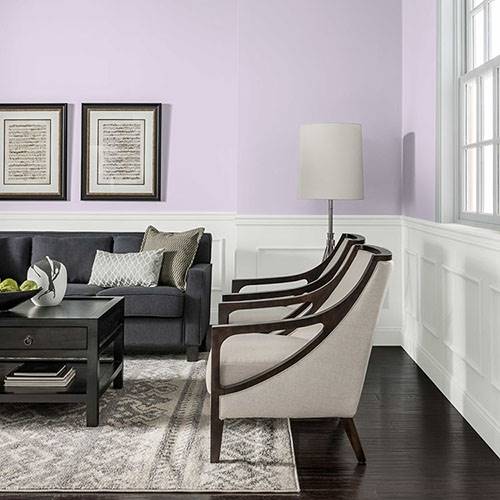 A lighter violet is a calming color for a craft room. Trim in white for a clean crisp feel.