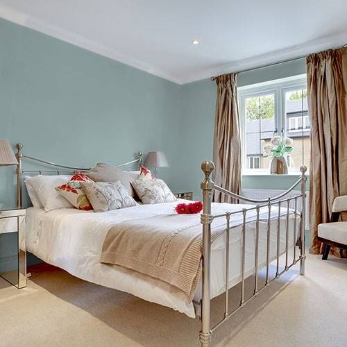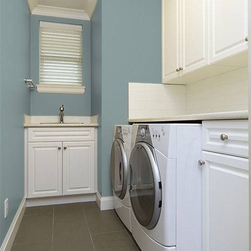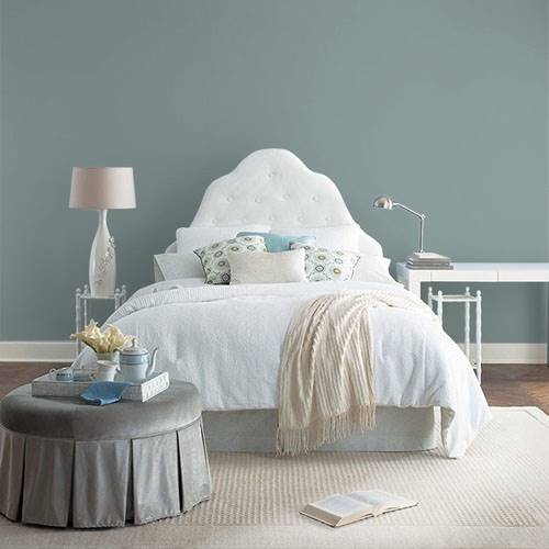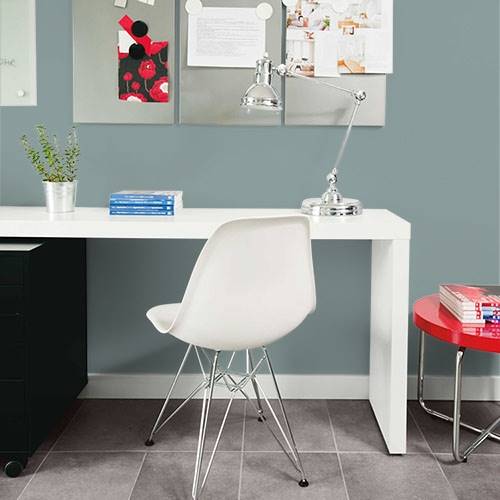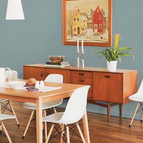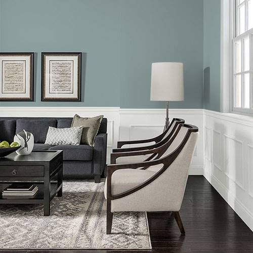 Used as an accent color this shade of gray green is a stunning selection. Pair with lighter shades of this same color for surrounding walls.