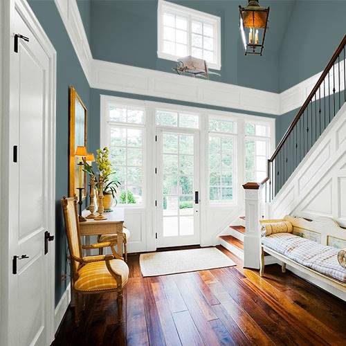 This complex dark forest inspired green is suitable for an exterior application. Dark camel tones make an excellent partner with this tone.