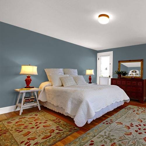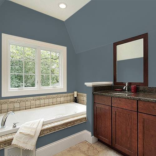 An elegant rich charcoal creates a mystical accent wall. Add white trim for a standout expression.