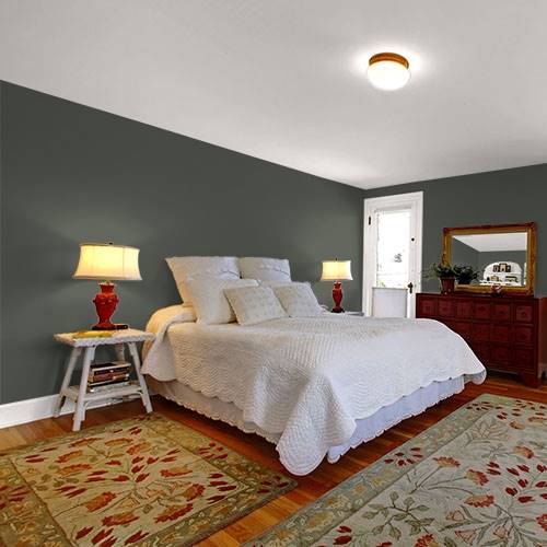 A dramatic forestry green is an excellent accent wall. Paired with earth toned golds, creates a lovely environment.
