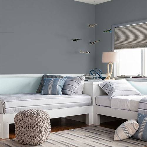 This classic deep gray is an excellent accent wall. Pair with shades of lemony yellows for a soft glow.