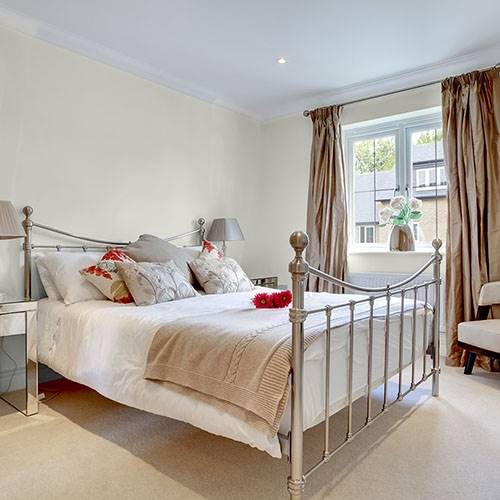 A lush tan that would create a wonderful bedroom color. Pair with darker brown and pink pillows as lovely accents.
