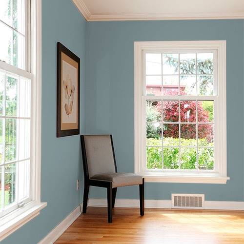 Apply this lovely grayed green into a cozy bedroom. Trim in off-whites or tinted light greens.