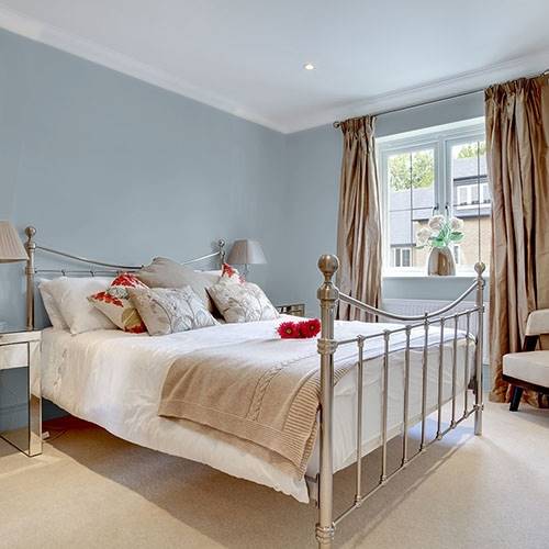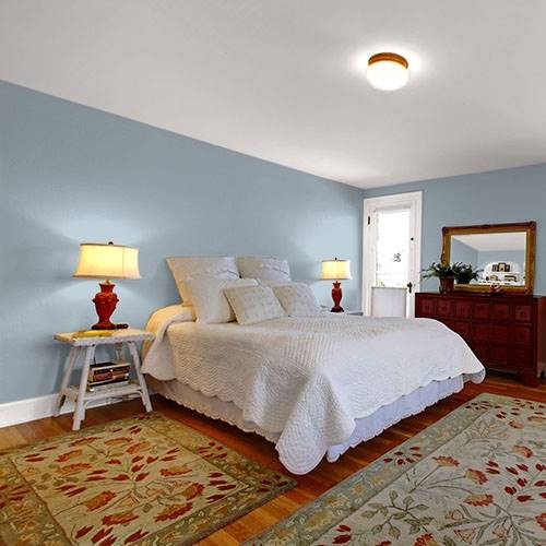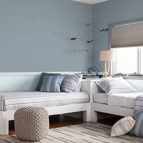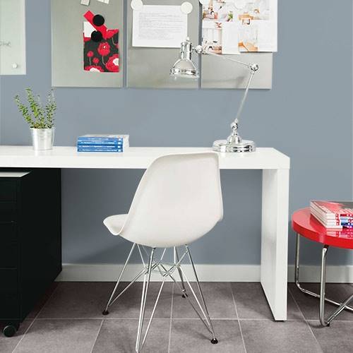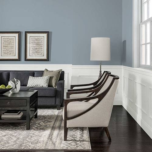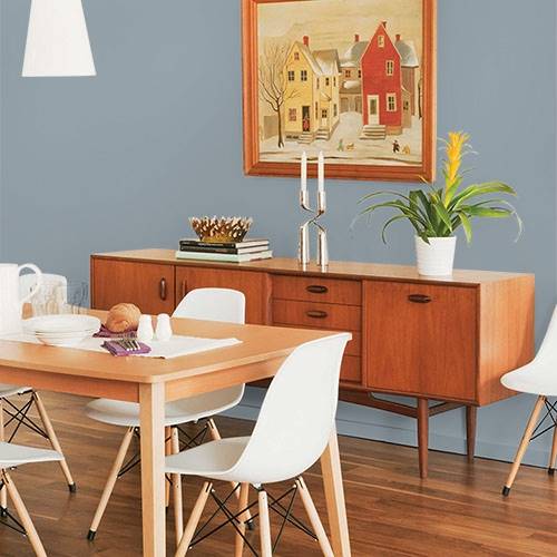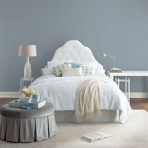 This is an elegant gray that works on an accent wall. Use lighter gray blues on the remaining wall areas.